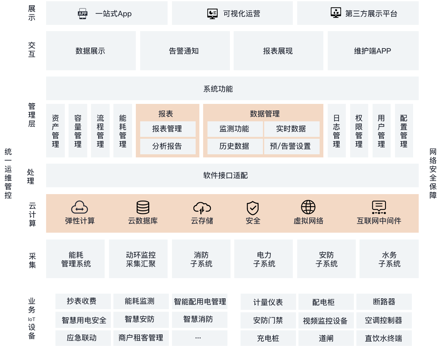 能源收费与物业管理费联动、业主报修、重点设备故障报警等功能!