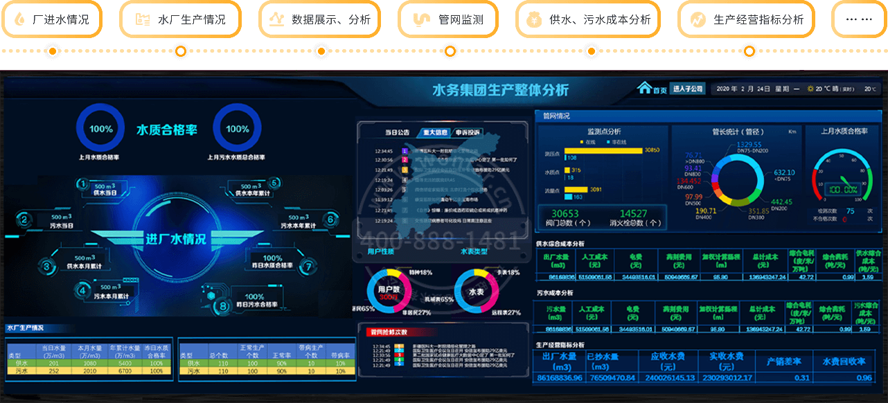 涵盖水务企业的“产、供、销、企业内控管理”,提供全方面一站式服务